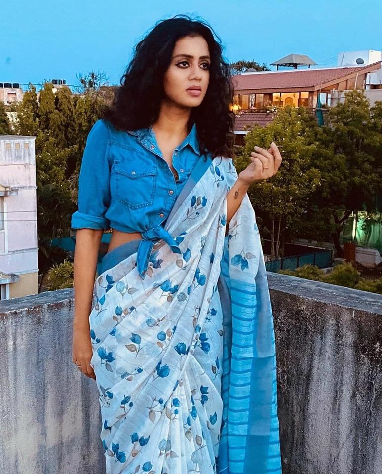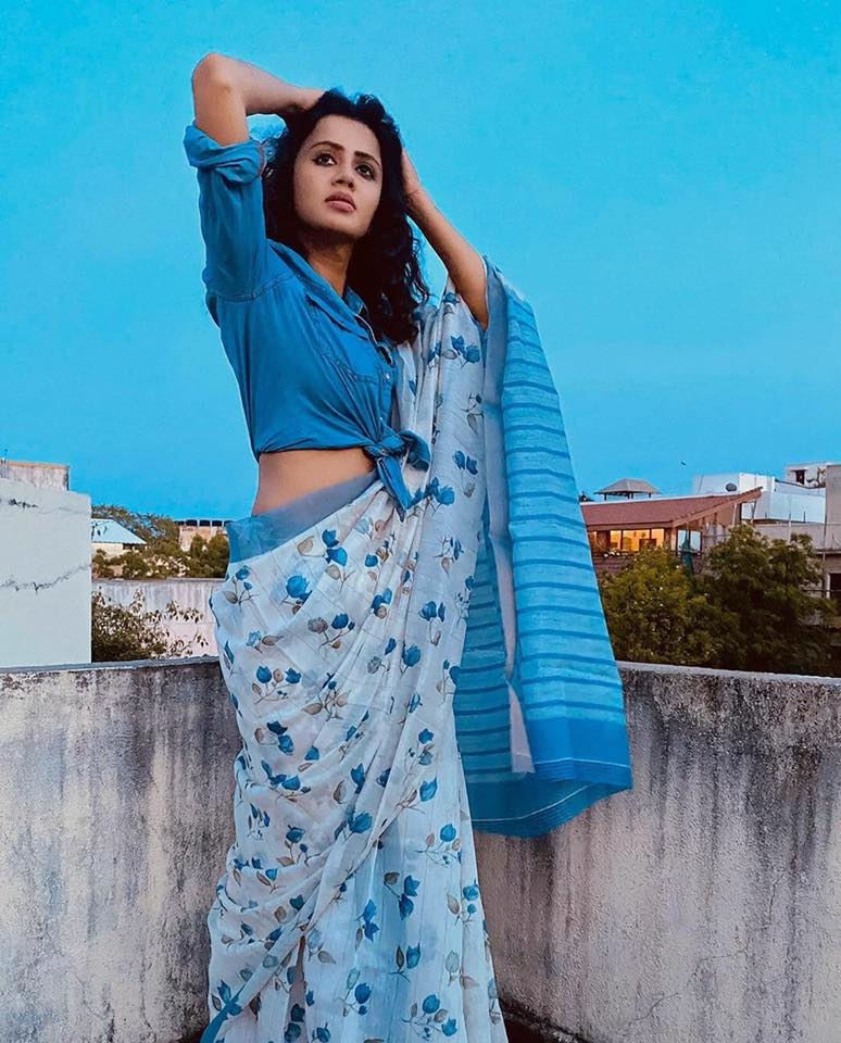 மடிசார் புடவை கட்டி மாமியாகவும், ஜீன்ஸ் ப்ளவுஸ் போட்ட மார்டன் ராணியாகவும் வித விதமான தோற்றத்தில் போட்டோக்களுக்கு போஸ் கொடுத்துள்ளார்.